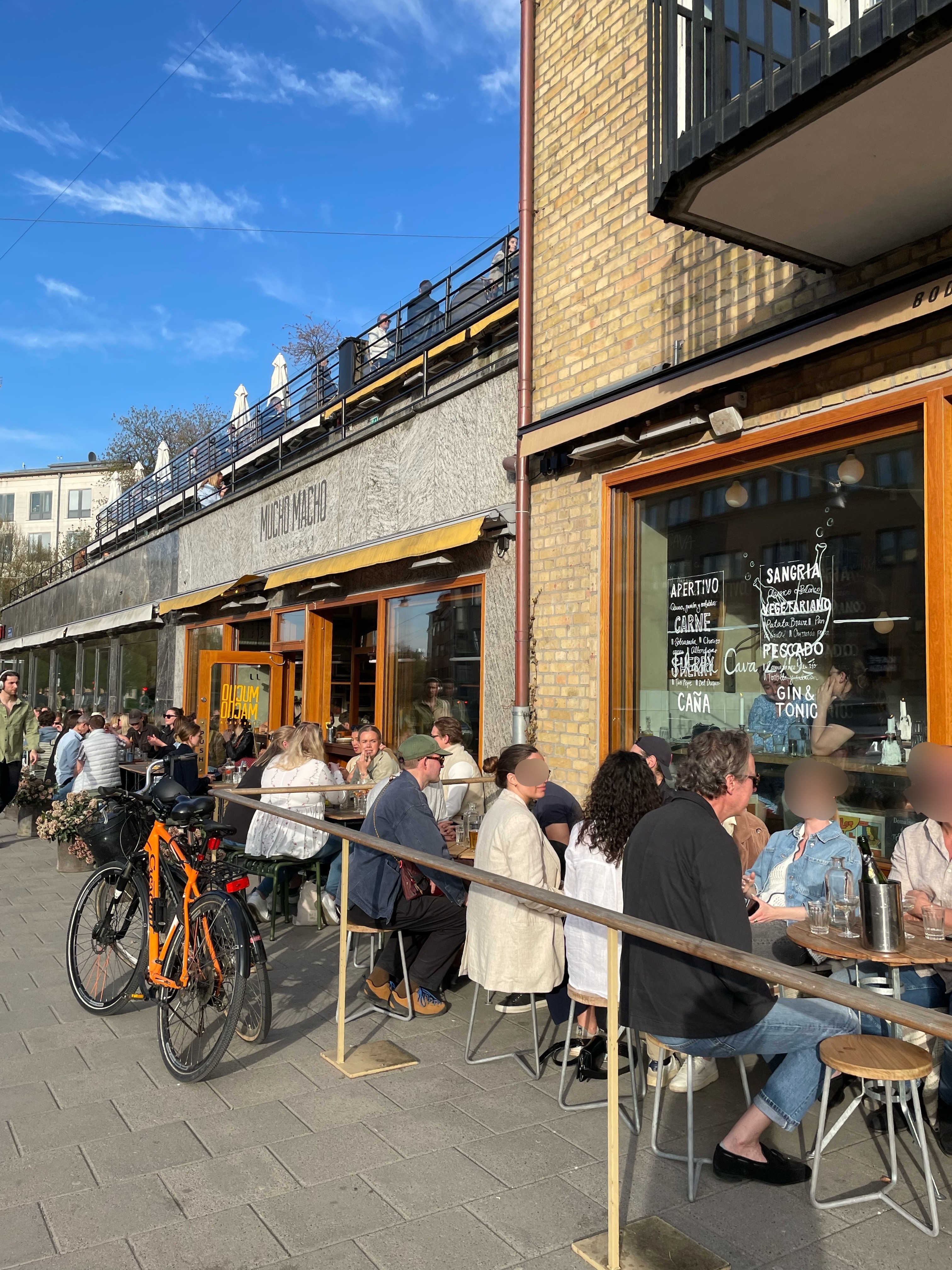 在緯度高日照時間相對有限的瑞典,一到天氣晴朗、溫度合理、日照時間開始越來越長時,瑞典人幾乎完全不會捨棄有陽光的戶外座位不坐而龜在陰涼的室內的。路邊餐廳、咖啡廳也都會在天氣開始變暖時將室外座位擺出來,讓大家能在室外享受陽光與美食。